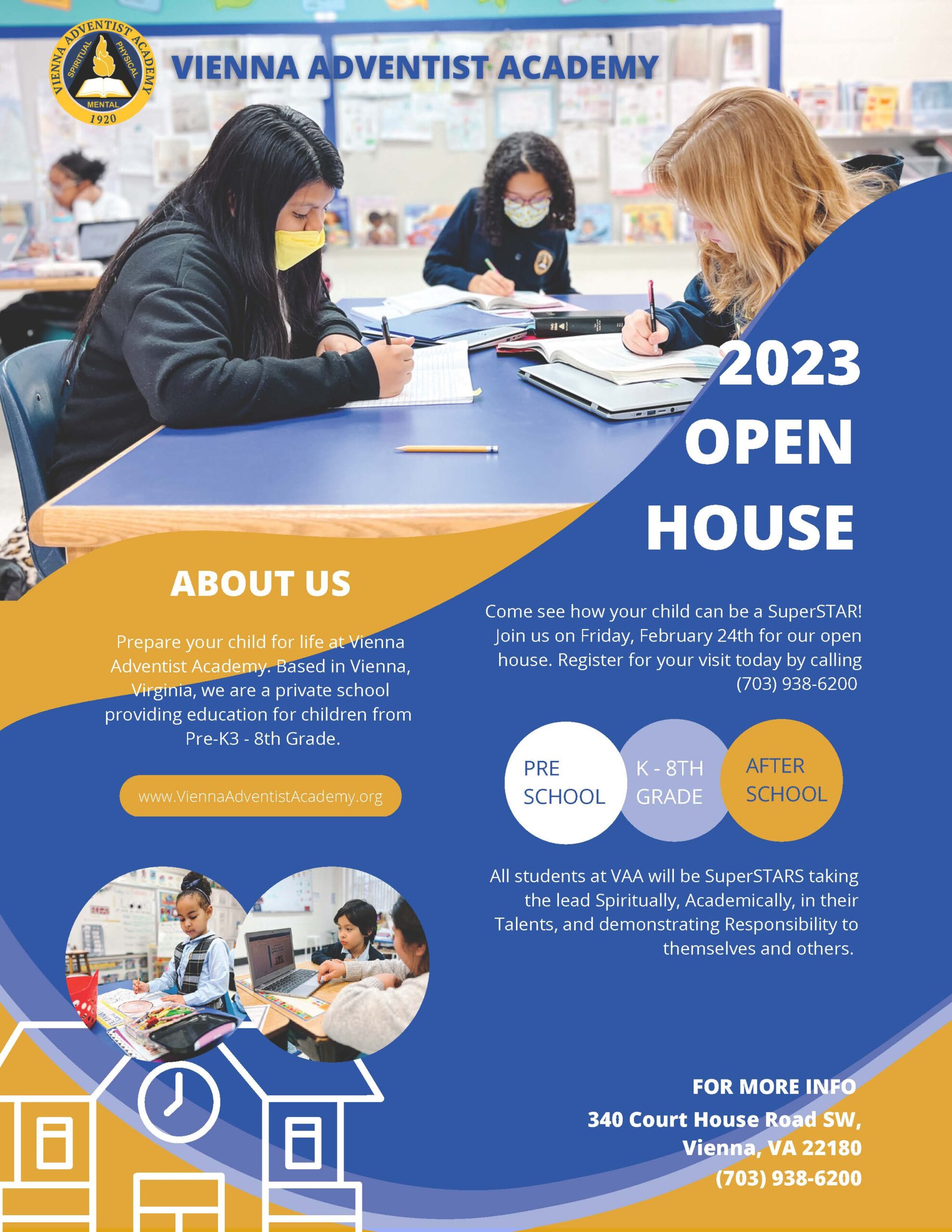 News 2023 Open House February 9, 2023March 6, 2023 Come see how your child can be a SuperSTAR! Join us on Friday, February 24th for our open house. Register for your visit today by calling (703) 938-6200.