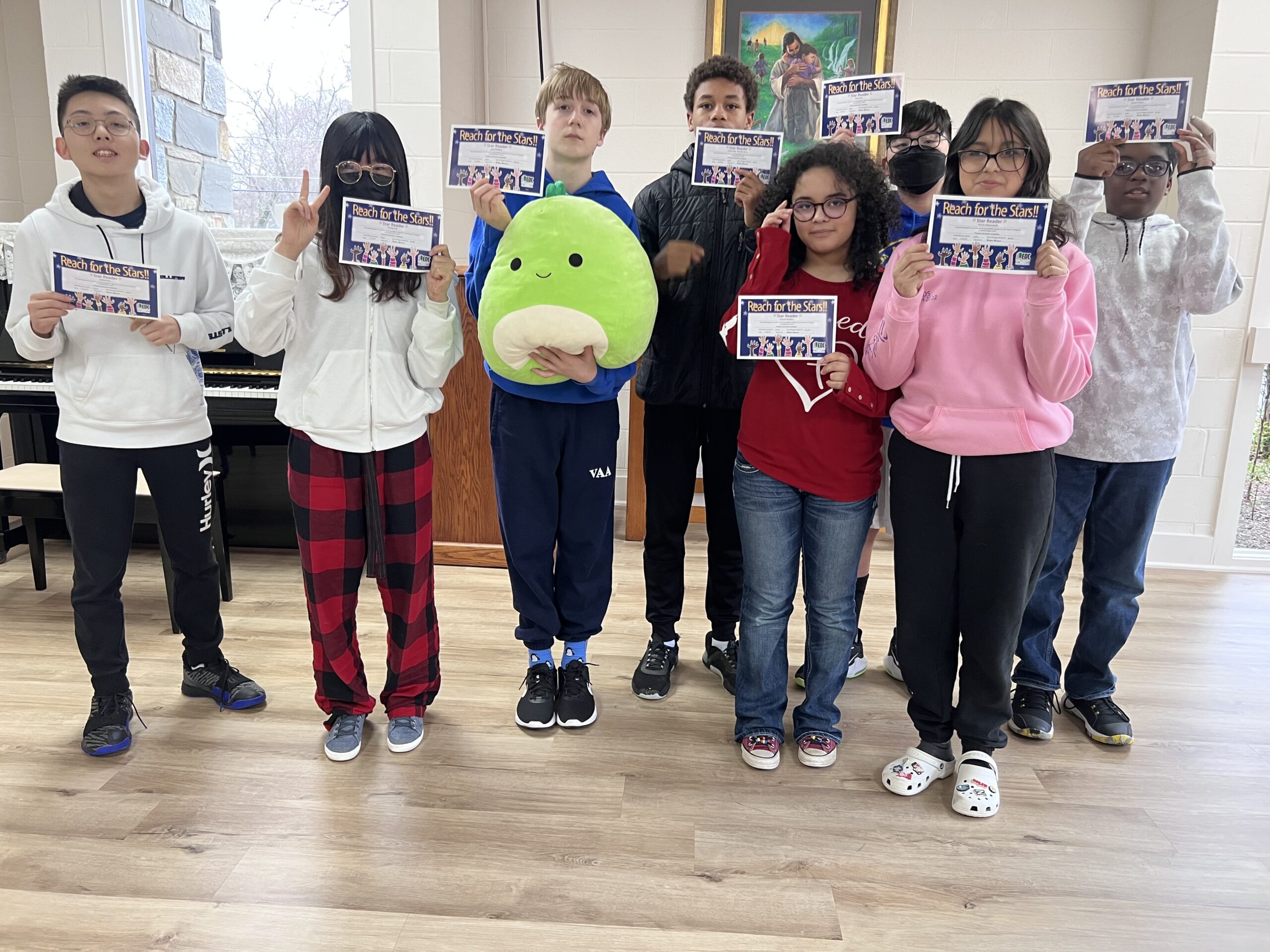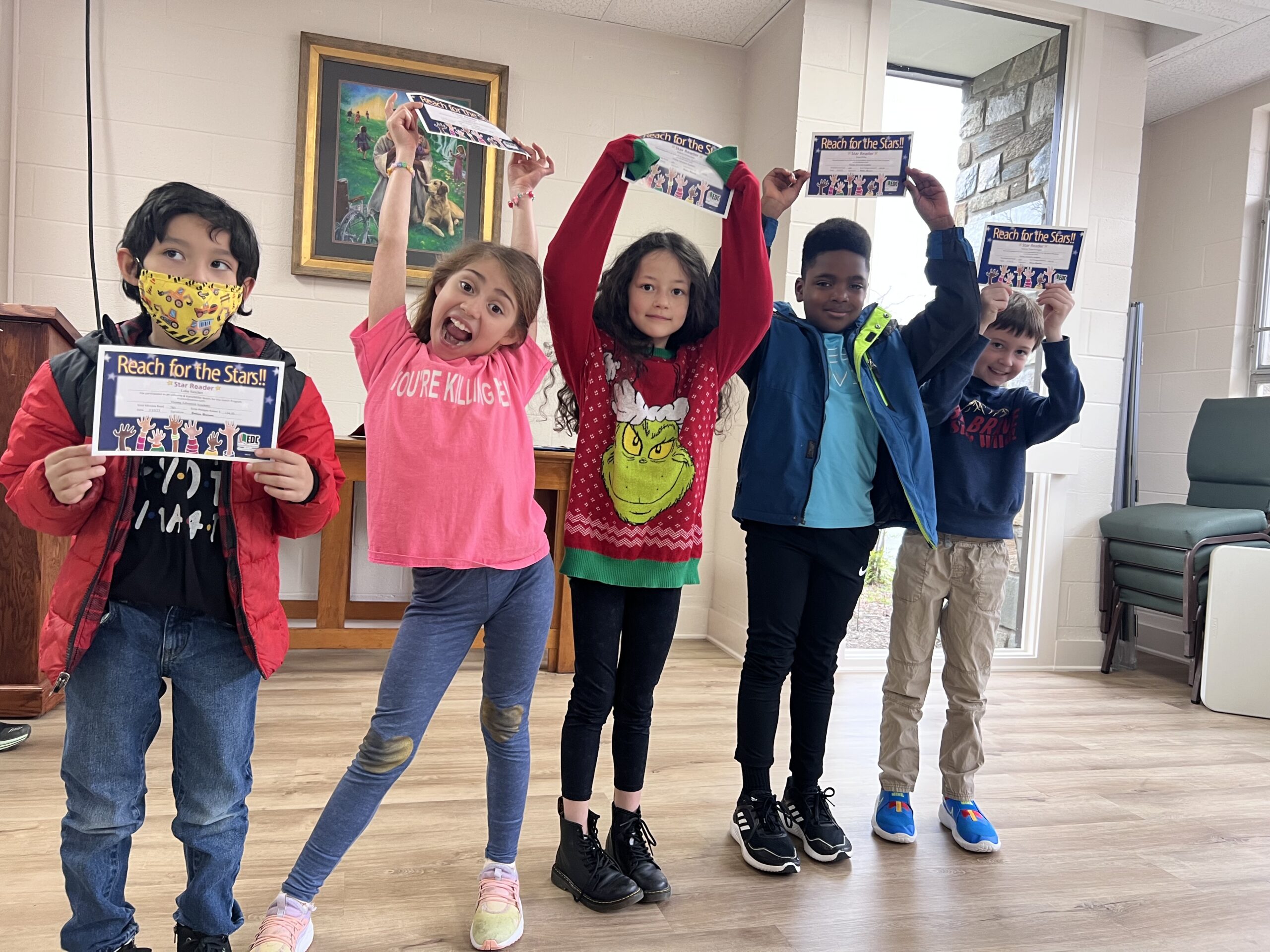 We are excited to announce that our students exceeded the school goal and read a total of 54,656 minutes during our Reach for the Stars fundraiser. Through your generous support, the VAA Reach for the Stars program earned a total of $3,239.99 in pledges. Of that amount 50% ($1,620) came back to VAA in the form of books and cash. The students earned $1,619.99 in books with 80% of the school participating. Additional pictures from the awards ceremony are posted below.